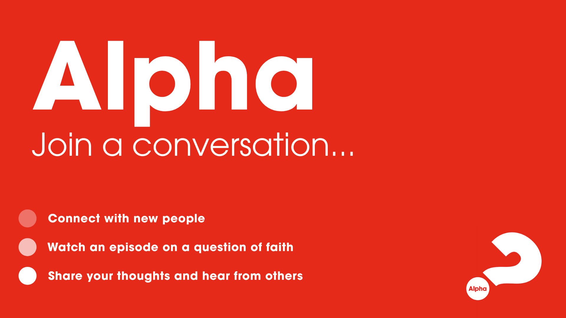 Alpha is a class creating space for honest, open, and judgment-free conversations for anyone to explore the Christian faith.
